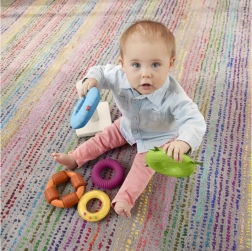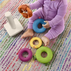 Vsak obroč prinaša drugačne dražljaje: trakove, mehak material, izrazite žlebove, raznolike teksture in ropotajoče kroglice. Otroci bodo uživali v prijemanju, stiskanju in stresanju.