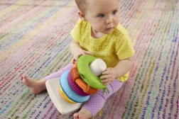 Stabilna osnova, ki se nežno ziblje, spodbuja ponavljajoče poskuse zlaganja ter razvija koordinacijo oko–roka in potrpežljivost.