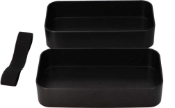 Elegantna črna lunch škatla z mačjim motivom je idealna za delo, šolo in izlete. Dve ravni za ločene porcije ohranjata hrano pregledno in svežo, medtem ko čvrst pokrov in elastični trak zagotavljata varno prenašanje brez neželenega odpiranja.