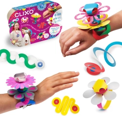 CLIXO Jewelry je bleščeč tematski set, navdihnjen z origamijem, ki s pomočjo močnih magnetov povezuje različne oblike v izviren nakit in dodatke. Dolgi trakasti deli in posebej zasnovani cvetlični elementi omogočajo ustvarjanje spiral, visečih dekoracij in izrazitih okraskov za lase. Deli so vodoodporni, lahki in varni – brez BPA in ftalatov.
