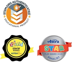 Edinstven vrtljiv sistem s fiksacijo v 24 položajih daje izdelkom stabilnost ter podpira prostorsko zaznavanje, fino motoriko in kreativno razmišljanje. Set je idealen za STEAM aktivnosti doma in v šoli, odličen pa je tudi kot sprostitvena antistresna pomoč za otroke in odrasle.
