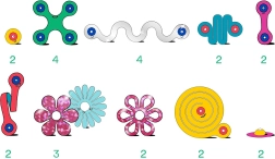 - 28 delov, 10 barv + 1 prosojen element z bleščicami