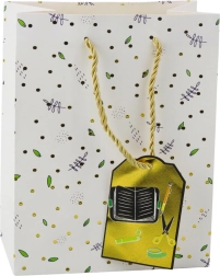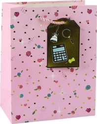 Darilna torba za izjemne šolske priložnosti je odlično oblikovana z modernim vzorcem, ki je navdihnjen s šolskimi motivi, ki pritegnejo pozornost in dodajo darilu edinstven značaj. Izdelana iz kakovostnega okrasnega kartona, zagotavlja trajnost in estetskost tudi pri prenašanju težjih predmetov. Zlati vrvični ročaji nudijo udobnost in varno prenašanje.