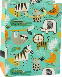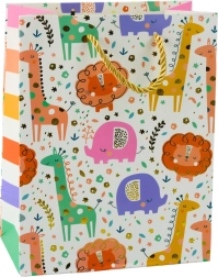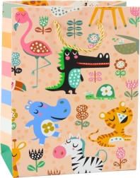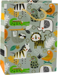 Ta papirnata darilna vrečka z motivi safari živali bo vašim darilom dodala kanček čarobnosti. Vsaka vrečka je čvrsta in barvita ter pritegne pozornost. Močni ročaji poskrbijo za udobno prenašanje, privlačni vzorci s srečnimi živalmi pa navdušijo tako otroke kot odrasle.