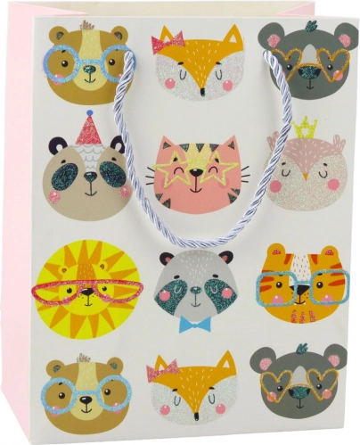 Z merami 23 x 18 x 10,5 cm je vrečka idealna za pakiranje različnih vrst daril – od drobnarij in kozmetike do knjig in drugega dodatka. Na voljo je v štirih različnih dizajnih, vsak z motivom muck v veselih barvah in z brokatnim zaključkom. Odlična izbira za rojstne dneve, praznike, Dan otrok ali druge posebne priložnosti!