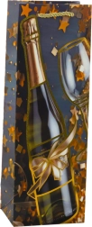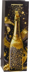 Iščete eleganten način, kako zaviti steklenico vina, šampanjca ali domačega likerja? Ta darilna vrečka iz kakovostnega papirja navduši z sijočimi zlatimi poudarki in motivom šampanjca, ki darilu dodata pridih posebnosti. Pletena materialna ročaja v zlati barvi sta prijetna za držanje in zagotavljata varno prenašanje.