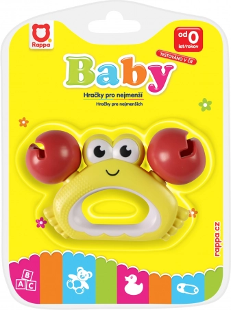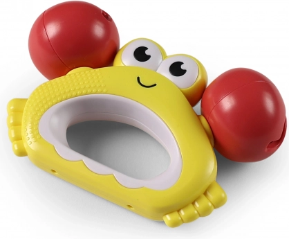 Barvita ropotulja v obliki raka za najmlajše. Spodbuja razvoj fine motorike in vidnega zaznavanja, enostavna za držanje in zabavna doma ter na poti.