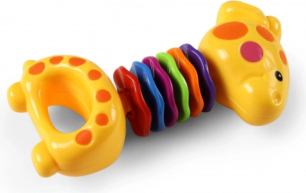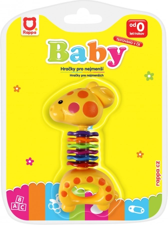 Ropotuljica žirafa za najmlajše. Podpira fino motoriko in vidno zaznavanje, ima prijetne barve in je enostavna za držanje. Odličen spremljevalec za igro.