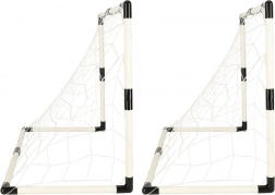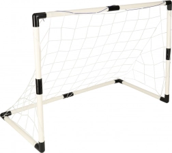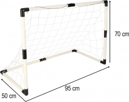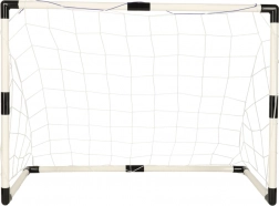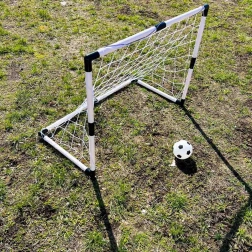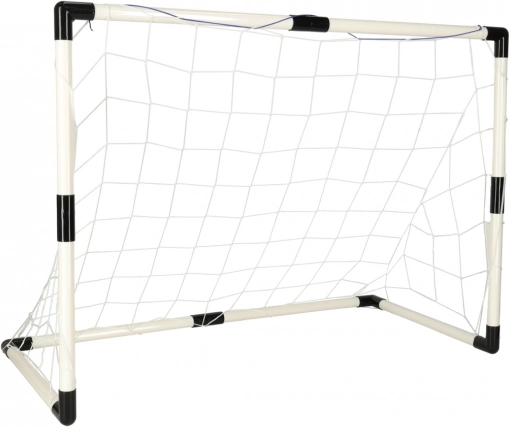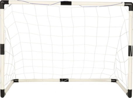 Trpežne plastične cevi brez ostrih robov in čvrsta mreža zagotavljajo varnost otrok, medtem ko sta dve penasti žogi idealni za učenje tehnike in nežno igro v notranjih prostorih. Komplet spodbuja razvoj motorike, koordinacije in zdravo veselje do gibanja.
