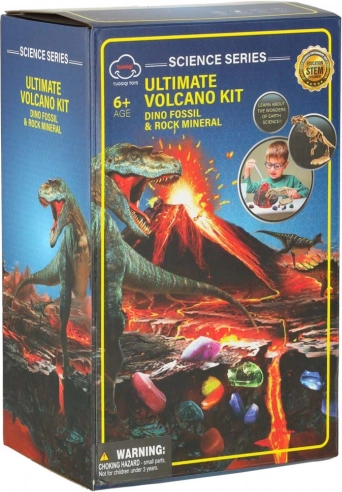 Ta interaktivni znanstveni set popelje male raziskovalce v svet prazgodovine in kemije. Po mešanju citronske kisline in natrijevega hidrogenkarbonata nastane učinkovit, a varen »izbruh« vulkana – s peno in brbotanjem za pravi WOW učinek. Nato bodo otroci s pomočjo orodij previdno odkrili okostje dinozavra in kamnite minerale.