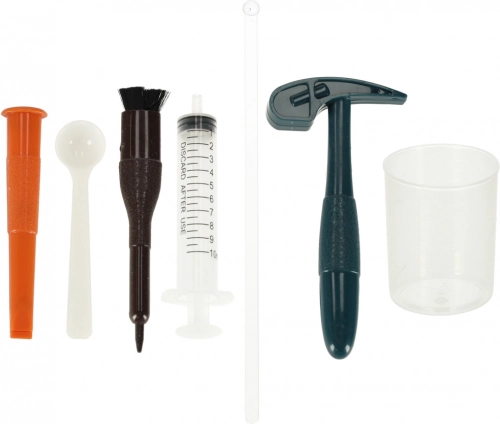 Komplet podpira učenje skozi igro, razvija spretnost, potrpežljivost in radovednost. Idealen je kot darilo za male znanstvenike od 6 let dalje – v enem paketu dobite kemijski poskus in arheološka izkopavanja.