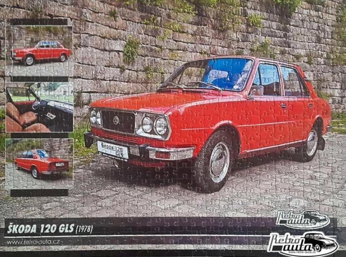 Sestavite si ikoničnega starodobnika iz zbirateljske edicije RETRO-AUTA: motiv Škoda 120 GLS (1978), skupaj 500 kosov in velikost po sestavi približno 48 × 36 cm – odlično darilo za ljubitelje klasičnih vozil.