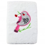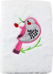 Izviren zvezek z mehko, kosmato platnico je idealen dodatek za vse, ki cenijo edinstvene in prijetne pripomočke. Bela platnica je okrašena z vezenino prikupnega ptička v rožnatih in srebrnih odtenkih, kar zvezku dodaja poseben čar in eleganco.