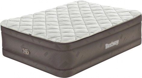 Uživajte v udobnem spancu kjerkoli. Napihljiva postelja BESTWAY v velikosti Queen nudi stabilno oporo, prijetno površino in povišano višino 51 cm za udobno vstajanje. Vgrajena električna črpalka zagotavlja hitro in brezskrbno pripravo ležišča ter njegovo praznjenje.