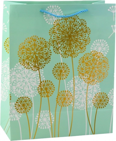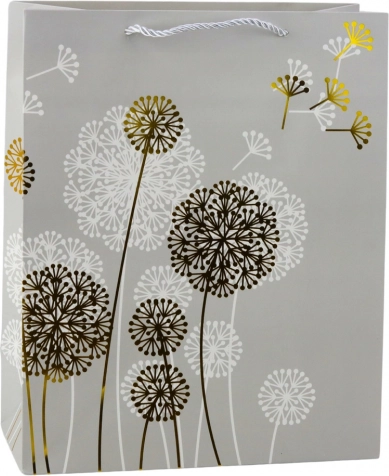 Ta stilska papirnata vrečka z nežnim naravnim vzorcem regrata in zlatimi ter belimi poudarki vašemu darilu doda razkošen videz. Primerna je za rojstne dneve, obletnice, poroke in družinska praznovanja ter se odlično ujema z modernimi dekorativnimi trendi.