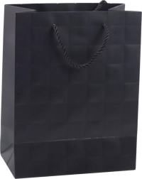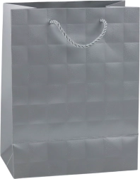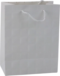 Ta modna darilna vrečka izstopa s čistim videzom in diskretno teksturo vtisnjenih kvadratov, ki delujejo sodobno in hkrati razkošno. Zahvaljujoč trdnemu okrasnemu kartonu in kakovostnim vrvčnim ročajem je vrečka vzdržljiva in primerna tudi za težja darila.