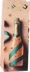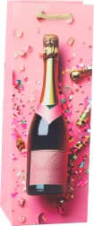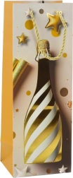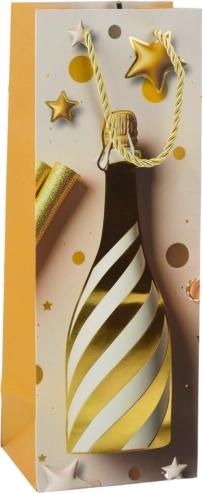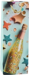 Elegantna papirnata darilna vrečka za steklenico z motivom šampanjca je idealna za stilsko podarjanje vina ali penine ob vsaki praznični priložnosti. Ponuja čvrst okrasni karton, pletena zlata ročaja in praznični dizajn s konfeti in zvezdami v pastelnih barvah. Popolna za rojstne dni, poroke, silvestrovo in druge posebne trenutke.