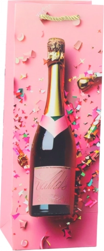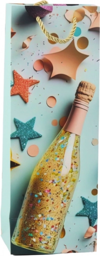 Dizajn s steklenico šampanjca, konfeti in zvezdami vsakemu darilu doda takojšen slovesen učinek in pritegne pozornost.