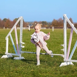 Hobi Konj je izdelan iz mehkega in varnega materiala ter ima trdno leseno palico. Na voljo sta dve velikosti: A4 (Srednja) in A3 (Velika). Popoln kot darilo zaradi stilskega barvnega pakiranja in priložene opreme, ki omogoča takojšnje vključevanje v igro.