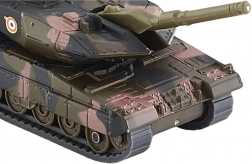 Zvest replika bojnega tanka v merilu 1:87 znamke SIKU bo razveselila male in velike ljubitelje tehnike. Ponuja realistične podrobnosti, kovinsko in plastično izvedbo, premično kupolo in top ter gladko premikajoče se gosenice. Del kompleta sta mini figurica vojaka in nalepke za individualno prilagoditev. Primerno od 3 let.