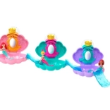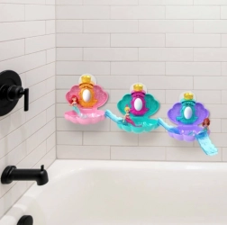 Odprite bleščečo školjko in odkrijte prikupno morsko vilo, navdihnjeno s priljubljenim svetom Male morske deklice. Zahvaljujoč prisesku set pritrdite na gladke ploščice ali rob kadi, vilo pa spustite po vodnem toboganu. Idealna igrača za kopel, ki spodbuja domišljijo in samostojno igro.