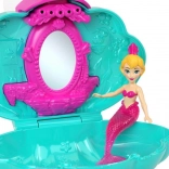 Odprta školjka skriva prizor z majhnim ogledalcem in detajli za domišljijsko igro. Lahka za prenašanje in hitro pospravljanje.