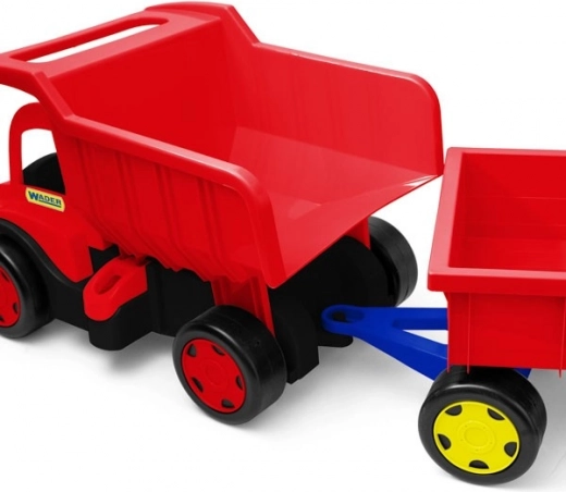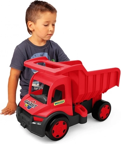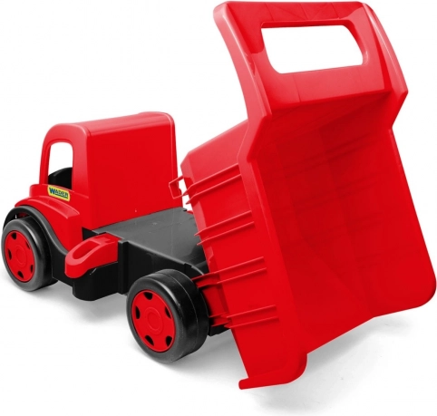 Velik rdeč tovorni tovornjak s prekucno karoserijo dolžine 55 cm prinaša ure zabave doma in na prostem. Ima odpirajočo se prekucno keson s praktičnim ročajem, dva kavlja spredaj in zadaj za vleko in priklop prikolice ter izjemno nosilnost do 150 kg. Trpežna izvedba iz kakovostne plastike podpira razvoj motorike in domišljije otrok.