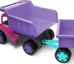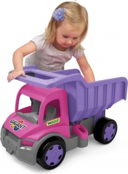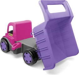 Odkrijte robusten kipalni tovornjak GIGANT v privlačni rožnato‑vijolični kombinaciji. Zahvaljujoč čvrsti konstrukciji z nosilnostjo do 150 kg je odličen za vožnjo, prevoz igrač in materiala v peskovniku. Odpirajoča se kesa z udobnim oprijemom olajša nakladanje in kipanje.