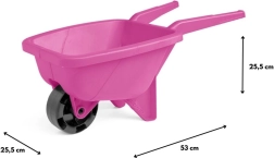 Lahka in trpežna rožnata otroška samokolnica je idealna za vrt, peskovnik in plažo. Ima kompaktno dolžino 53 cm, oblikovane ročaje za enostavno vodenje in je izdelana iz varne, odporne plastike, primerne za različne vremenske razmere.