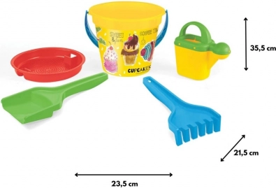 IML komplet za pesek, 5 kosov, je odličen pripomoček za vsakega otroka na plaži, igrišču ali na vrtu. Zaradi živahnih poletnih barv in kakovostne izdelave zagotavlja dolge ure ustvarjalne zabave. Grafika, nanešena s tehnologijo IML, je odporna na vodo in sonce, zato ohrani svoj videz tudi pri intenzivni uporabi.