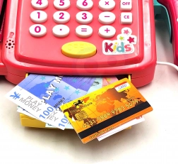 Otroci lahko dejansko seštevajo nakupe, skener s piskom pa posnema blagajno v trgovini – zabava in učenje v enem.