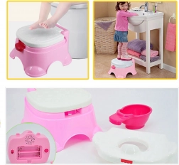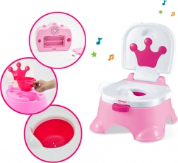 Otroški nočni kahlic z glasbo 3v1 znamke WOOPIE pospeši učenje otrokove samostojne uporabe kahlice! Kahlica je idealna za otroke zaradi širokega in ergonomskega sedeža, stranskih ročajev in stabilne osnove. Zahvaljujoč vgrajenim melodijam, ki jih lahko kadarkoli predvajate ali ustavite, bo čas na kahlici za otroka zabavna izkušnja. Kahlica je zasnovana tako, da staršem olajša življenje; izprazniti jo je mogoče v le nekaj trenutkih. Sestavljeno kahlico lahko uporabite tudi kot stolček ali podstavek za umivalnik. Izdelana je iz najkakovostnejših in varnih materialov.