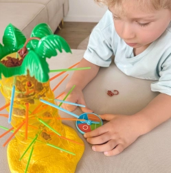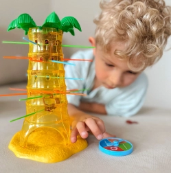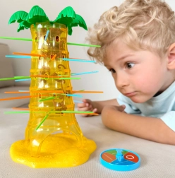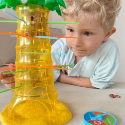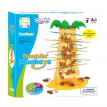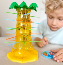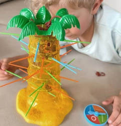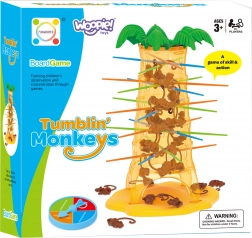 V tej čudoviti igri znamke Woopie vstavljate palčke v odprtine na palmi in nanje postavljate opice. Vsak potez zavrtite kolo in puščica določi, katero palčko morate izvleči. Cilj je obdržati opice na palmi čim dlje in ne povzročiti njihovega padca. Zmaga tisti, ki podre najmanj opic.