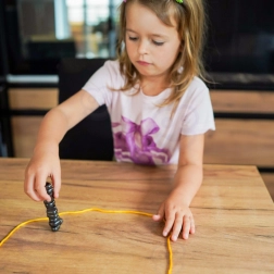 Prožna vrvica hitro ustvari “igrišče” kjerkoli. Z njo je igra pregledna tako na mizi kot na poti.