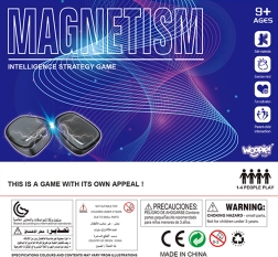 Odkrijte napeto magnetno igro, v kateri lahko vsaka poteza spremeni potek dvoboja. Igralci izmenično polagajo gladke magnetne kamne v določeno območje – zadostuje drobna napaka in kamni se povežejo, kar pomeni, da jih mora igralec vzeti nazaj. Cilj je kot prvi odložiti vse svoje magnete.