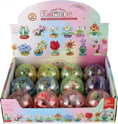 Ta prikupna mini sestavljanka spremeni vsako kapsulo v presenečenje, polno barv. Vsak cvet je sestavljen iz več delčkov, ki natančno sodijo skupaj, po sestavi pa nastane dekorativni model velikosti približno 6 cm. Zaradi različnih tipov cvetov si lahko otroci ustvarijo svoj mali »cvetlični vrtiček«.