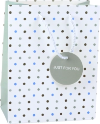 Na sprednji strani vsake vrečke je dekorativna visečka z napisom 'Just For You', kar poudari edinstvenost darila in celotnemu videzu doda eleganco. Močni vrvni ročaji v barvi, usklajeni z motivom, zagotavljajo udobno prenašanje.