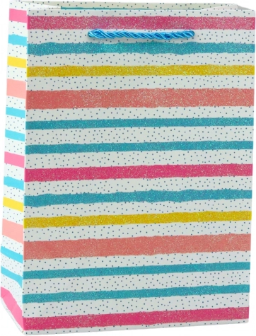 Barvita darilna vrečka je idealen način, da darilo zavijete stilsko in veselo. Njen igriv in barvit dizajn prinaša sodoben in energičen značaj, zato je popolna za rojstne dni, zabave in druge priložnosti.