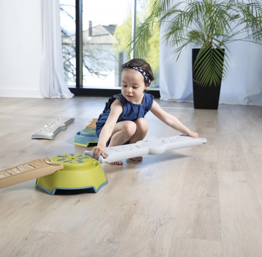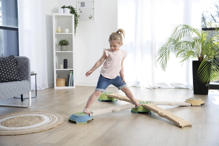Smoby balansirna proga ponuja edinstveno priložnost za otroke od 2 let za izboljšanje njihovih motoričnih spretnosti in razvoj senzoričnega zaznavanja. Proga je sestavljena iz štirih dolgih panelov dolžine 70 cm z raznoliko teksturo ter štirih podstavkov za njihovo pritrditev. Zaradi možnosti poljubne postavitve lahko ustvarite do 3,5 metra dolgo traso, kar ponuja neskončne možnosti za igro.