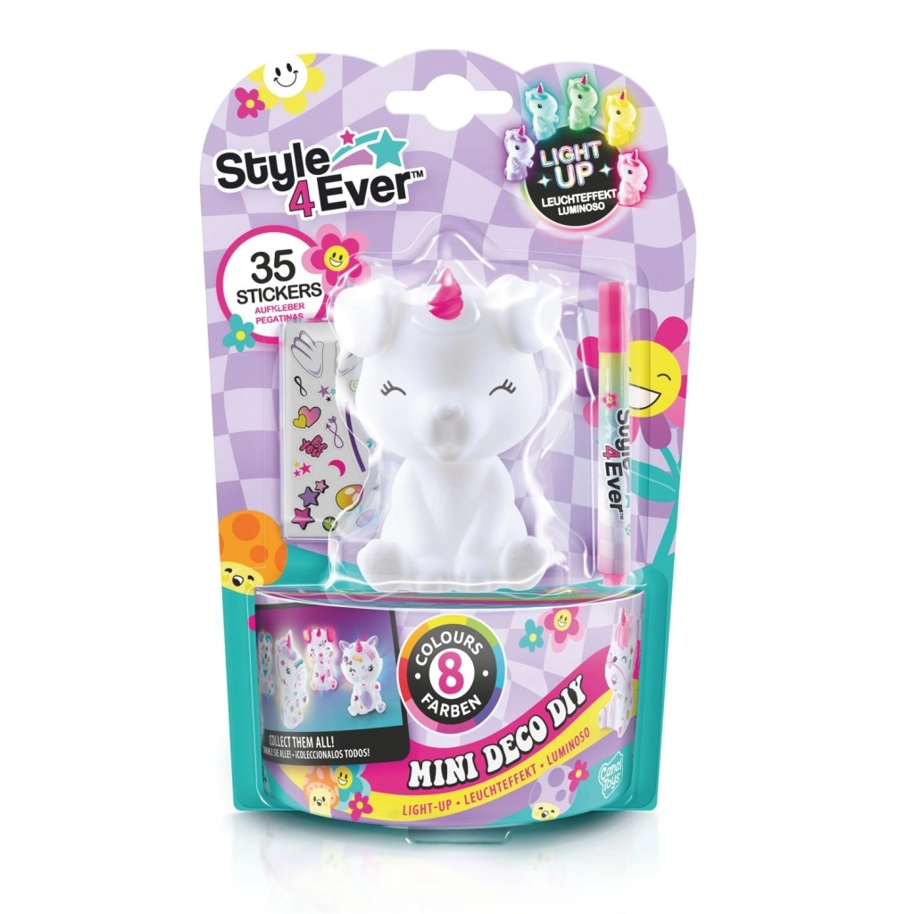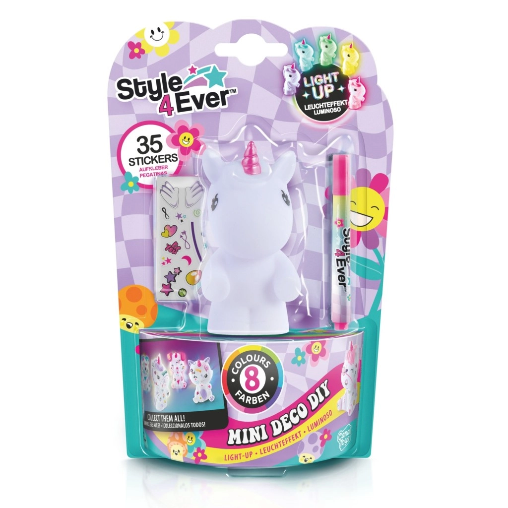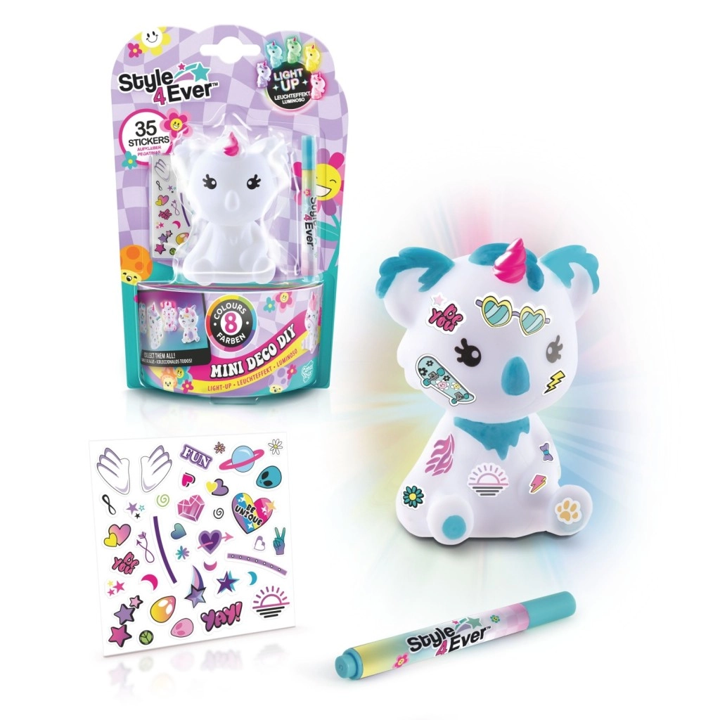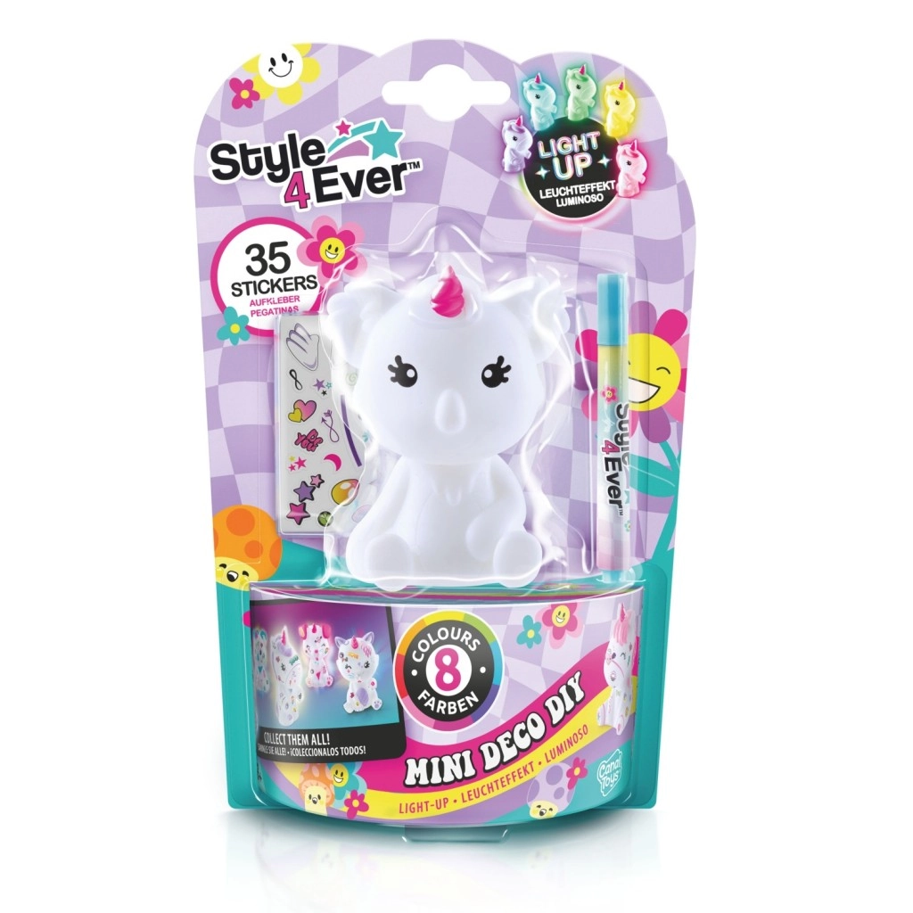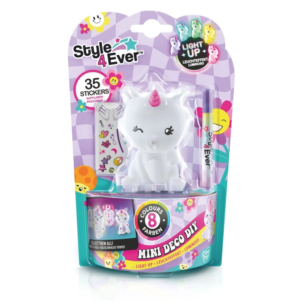Ta edinstvena svetleča figurica je odlična kombinacija dekoracije in ustvarjalnosti. Zahvaljujoč vgrajeni osvetlitvi, ki menja 8 barv, ustvari prijetno vzdušje v otroški sobi ali igralnem kotičku. Z nalepkami in priloženim flomastrom si otrok figurico zlahka prilagodi po svojem okusu.