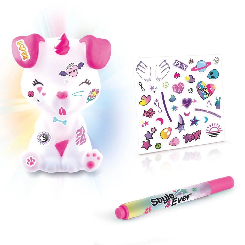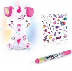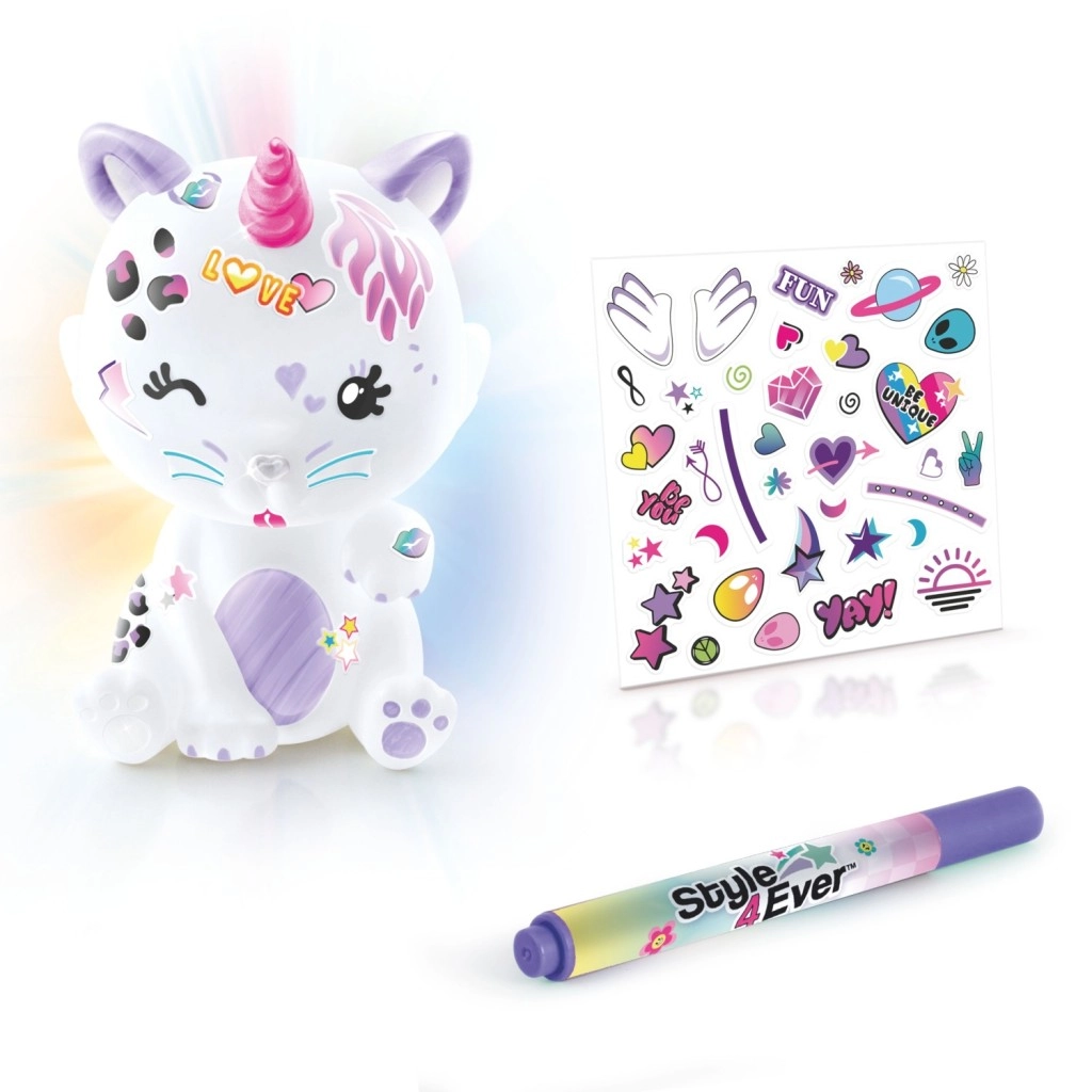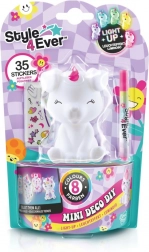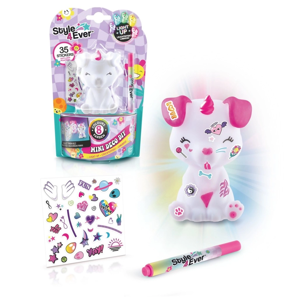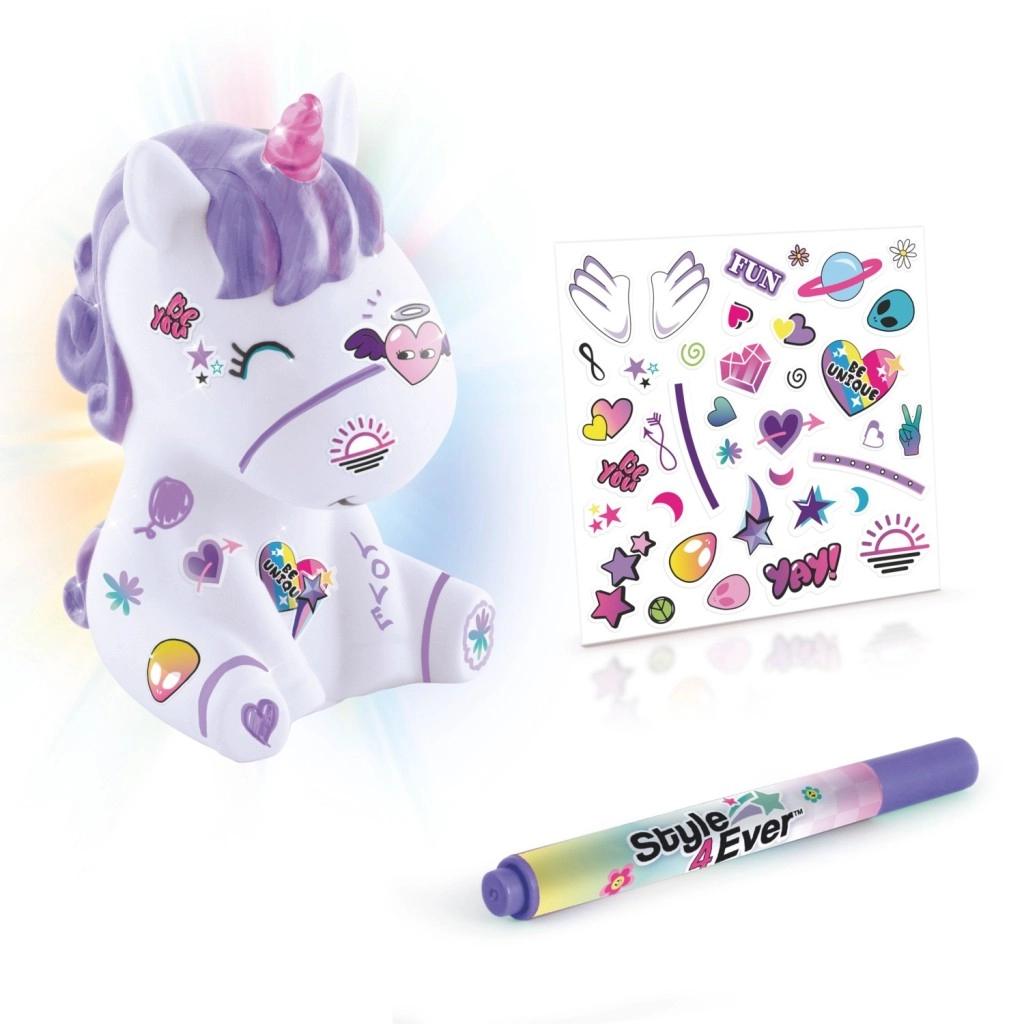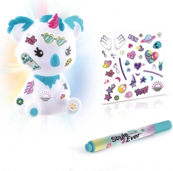 Ta edinstvena svetleča figurica je odlična kombinacija dekoracije in ustvarjalnosti. Zahvaljujoč vgrajeni osvetlitvi, ki menja 8 barv, ustvari prijetno vzdušje v otroški sobi ali igralnem kotičku. Z nalepkami in priloženim flomastrom si otrok figurico zlahka prilagodi po svojem okusu.