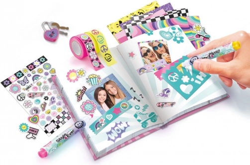 Ustvarjajte izvirne strani, zapisujte doživetja in okrasite dnevnik povsem po svojem slogu. Zahvaljujoč praktični ključavnici bodo vse skrivnosti na varnem, raznolik komplet dodatkov pa omogoča neskončno kombinacij in idej.