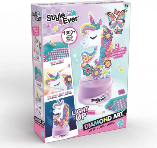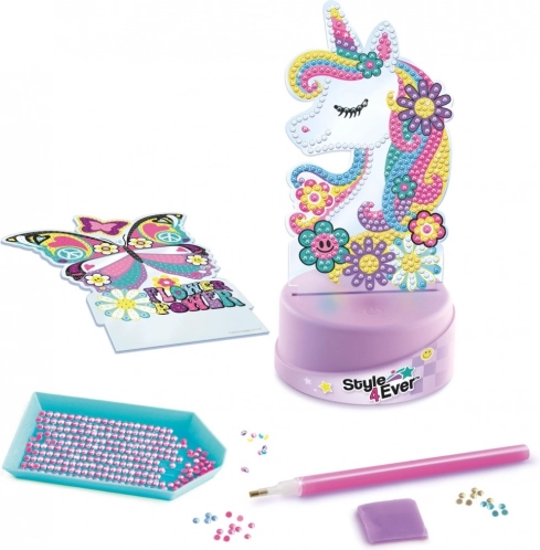 Kreativni komplet Style4Ever: diamantno slikanje in svetleča lučka samorog. Preprost postopek, bleščeči kamnčki, čudovita dekoracija. Od 6 let, na 2× AA.