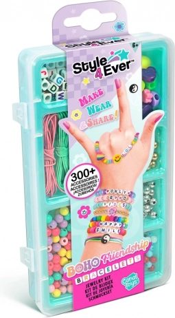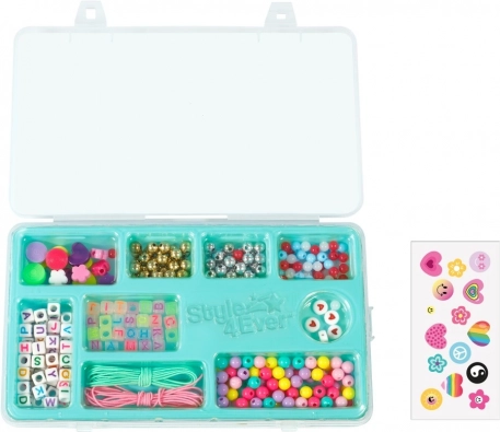 Ustvarite svoje lastne modne dodatke s kompletom Style4Ever! Ta mini komplet ponuja več kot 300 komponent za izdelavo izvirnih zapestnic za vas in prijatelje. Črkovne perlice svetijo v temi in vašim zapestnicam dodajo čaroben učinek. Preprosta izdelava, boho slog in veliko kombinacij bodo razveselili vse male oblikovalce od 6 let naprej.