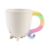 Bela keramika z mavričnim ročajem/repkon in nežnim obrazkom deluje prisrčno in izvirno. Idealna kot dekoracija in za vsakodnevno uporabo.