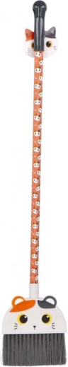 Prisrčen komplet za male pomočnike v gospodinjstvu: otroška metlica in smetišnica z motivom mačke v oranžni barvi. Lahka, trpežna in varna za otroke od 3 let naprej, spodbuja samostojnost in odgovornost pri pospravljanju. Idealna za manjše nečistoče v otroški sobi in kuhinji.
