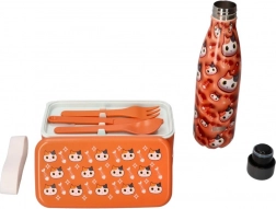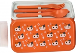 Stilski lunch box z motivom muce ponuja pametno rešitev za prenašanje pripravljenih obrokov. Integrirani pribor in praktičen elastičen trak ohranjata vsebino varno skupaj, medtem ko je trpežen plastičen material primeren za vsakodnevno uporabo.