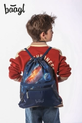 Vrečka Baagl Vesolje je idealna izbira za šolarje in aktivne otroke. Ponuja prostoren glavni predel in praktičen sprednji žep na zadrgo, v katerega spravite drobnarije, ključe ali denarnico. Trpežen material se zlahka vzdržuje in prenese vsakodnevno uporabo.