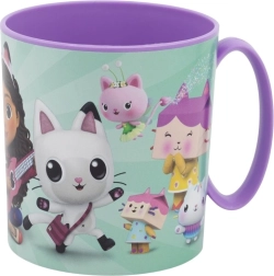 Otroški plastični lonček s priljubljenim motivom Gabininega čarobnega domka bo razveselil male oboževalce in starše. Zaradi lahke in trpežne zasnove je primeren za vsakodnevno uporabo doma, v vrtcu in na izletih. Prostornina 390 ml je idealna za vodo, čaj ali sok, lonček pa lahko udobno segrevate v mikrovalovni pečici.