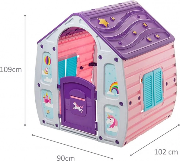 Otroška hišica Magical House Unicorn je idealen prostor za ustvarjalno igro – z veselimi motivi samorogov in mavrice spodbuja domišljijo in ustvarjanje lastnih zgodb. Zahvaljujoč stabilni plastični konstrukciji je primerna za notranjo in zunanjo uporabo ter otrokom nudi njihov lasten čaroben kotiček.